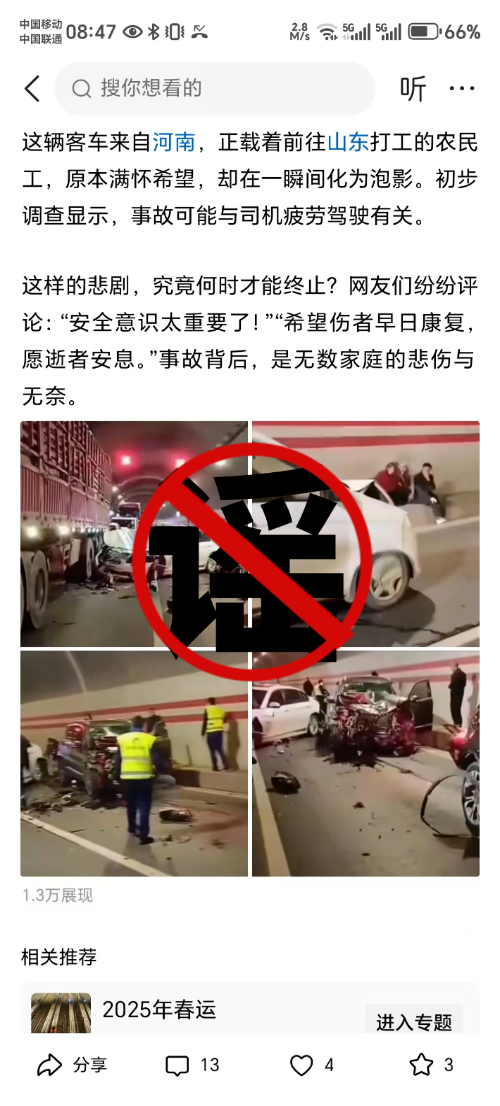 此消息一经发布,迅速在网络上引发热议。聊城公安对此高度重视第一时间启动核查机制,经核实聊城从未发生过类似交通事故,该信息内容纯属虚假编造!